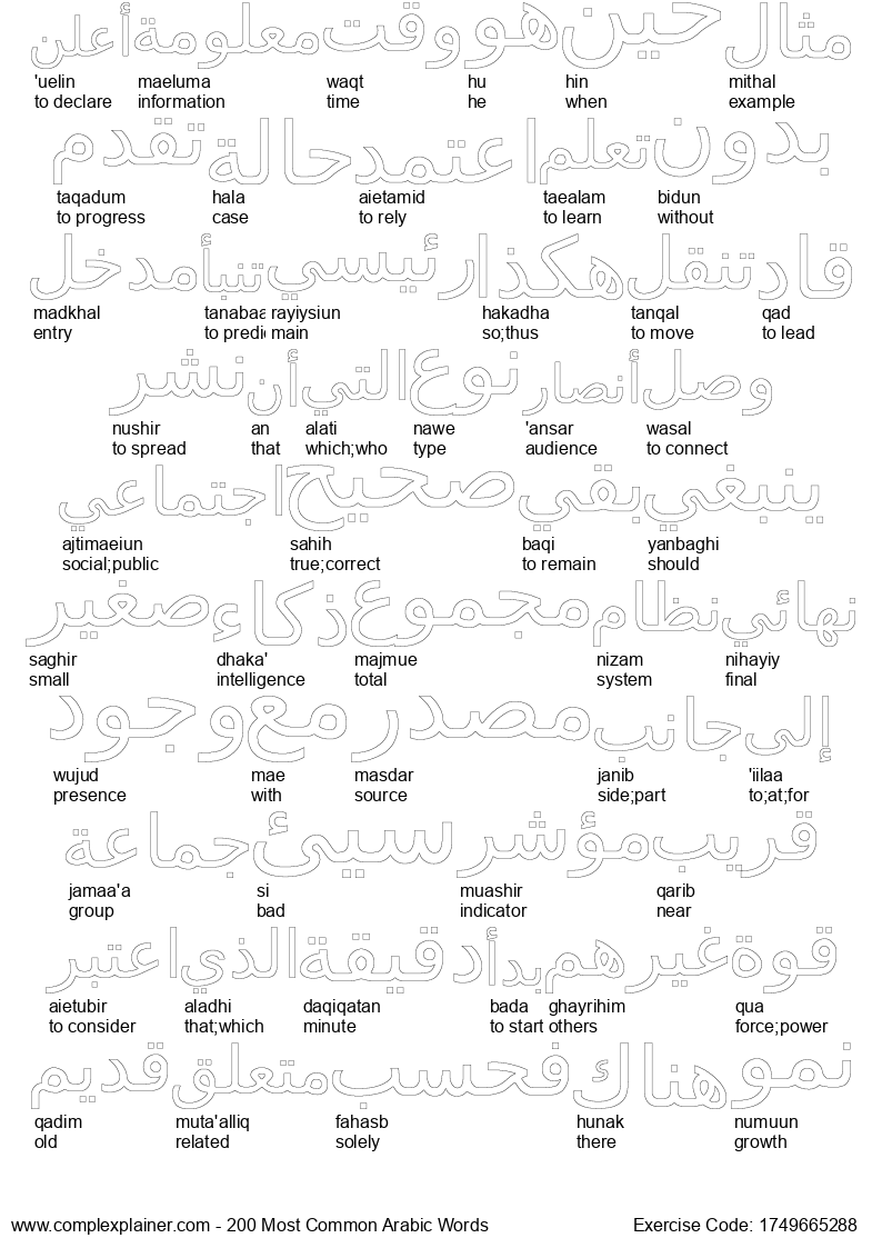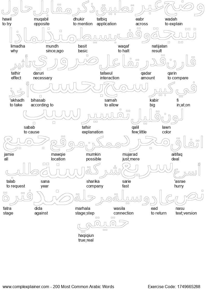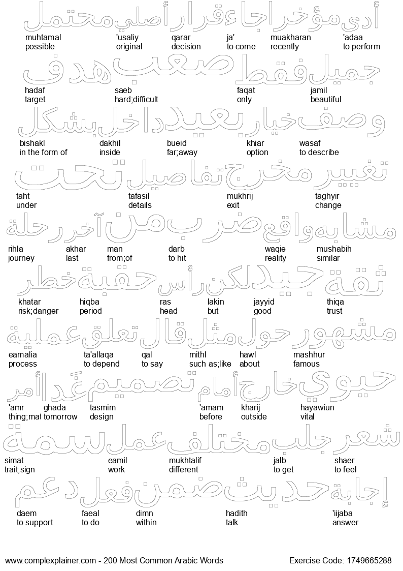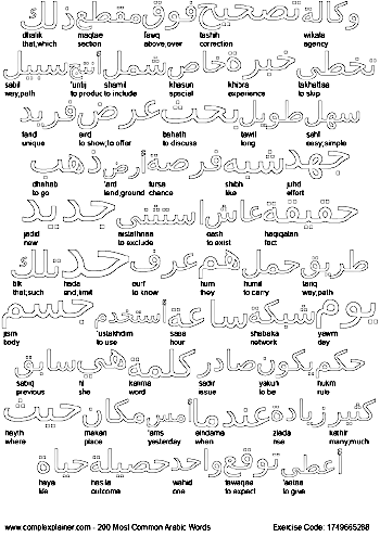 Like coloring book for relaxation? Why not doing the activity while at the same time memorizizing top 200 arabic words? Download and print the 4 pages below. The words are based on 50 articles on arabic news sites.