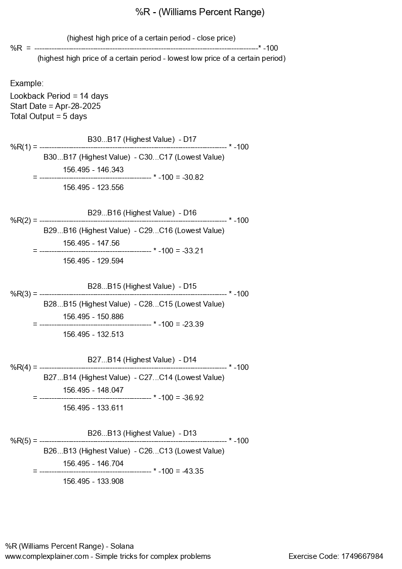 A financial formula that provides insights into overbought and oversold levels. The value moves between 0 and -100. Value above -20 is often considered overbought while value below -80 is considered oversold.